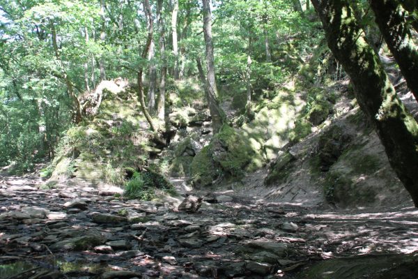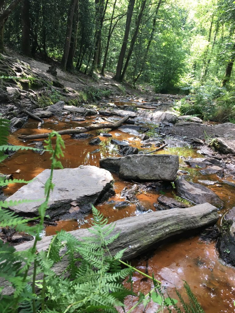 - Kit : Alors là, pas de secret, c’est effectivement de la rouille qu’il y a dedans, dû au fer du schiste rouge ; mais c’est vrai qu’avec les fougères et les mousses qui recouvrent tout, on a l’impression d’évoluer dans un autre monde.