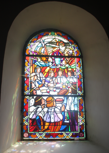- Le dernier vitrail illustre l’apparition du saint Graal aux chevaliers de la Table Ronde.