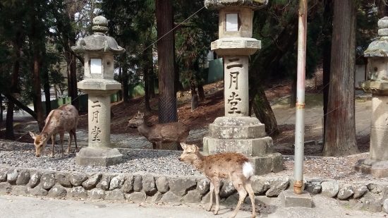 Notes de voyage : deux petites choses qui peuvent sembler anodines mais qui vous seront très utiles : ne mangez pas les biscuits ! C’est peut-être bête, mais ces biscuits ne sont pas faits pour vous. Mais si vous avez envie d’avoir mal au ventre durant le reste de la journée, libre à vous, faites ! Deuxième chose, évitez à tout prix de retirer un biscuit que vous avez tendu à un cerf, sous peine de vous faire agresser en représailles. Pour avoir vu une touriste tenter l’expérience, croyez-nous, vous n’avez aucune envie de vous prendre un grand coup de tête cornu dans votre séant et d’allez voler à deux mètres de là (sous les hochements de tête désabusés des japonais sur place).