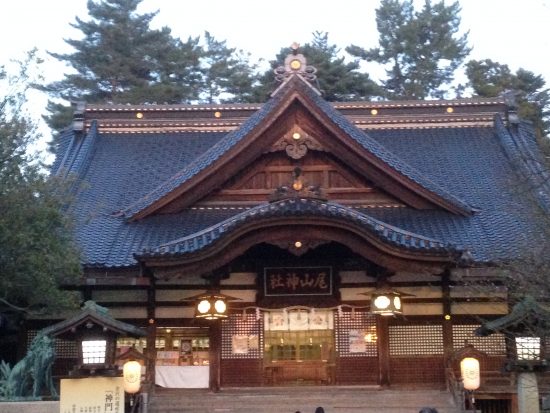 L’Oyama jinja est un sanctuaire shinto situé à Kanazawa en-dessous du Kenroku-en. A la base construit à Utatsuyama, il fut déplacé à Kanazawa en 1873. Oyama jinja est connu pour son portail principal, qui est un curieux mélange de styles architecturaux religieux japonais, chinois et européens et mesurant près de 25 m de haut jusqu’au paratonnerre. Le troisième étage de cette porte est célèbre pour ses vitraux néerlandais.