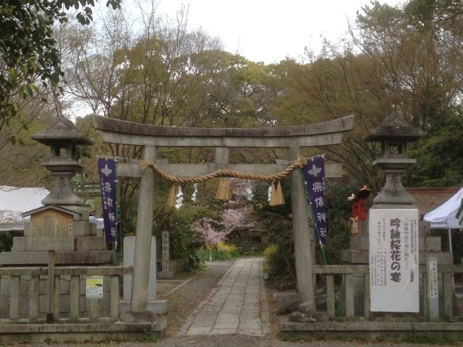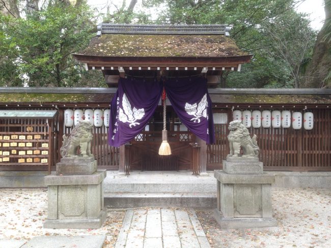 Fondée en 765, l’année même où la capitale impériale fut déplacée à Heian Kyo (Kyoto), ce sanctuaire est connu pour abriter le plus ancien camphrier de Jardin nationnal Gyoen, un arbre qui aurait plus de 600 ans. Le sanctuaire est dédié aux Munaka San’nyoshin, trois divinités de la mer mais qui possèdent également comme responsabilité les routes et les voies de déplacements.