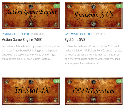 Afin de mieux vous aider, voici un lien vers les systèmes de jeu que nous avons décrits et qui vous permettra de comprendre le fonctionnement de ces systèmes de jeu : http://www.geek-it.org/category/aides-et-tutoriels/systemes-de-jeu-de-role/