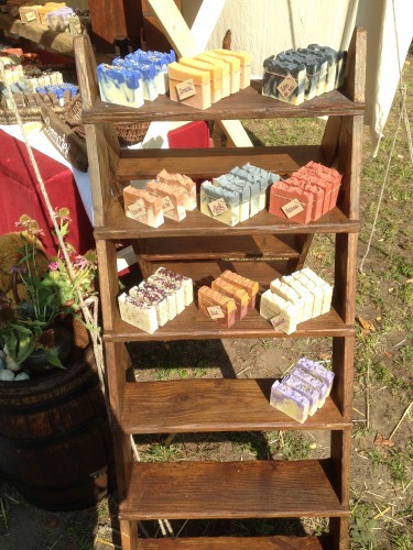 Embaumant l’air non loin du site de démonstration d’armes, un stand permettait de se fournir en savons artisanaux parfumés à diverses plantes (romarin, lavande, coquelicot, etc.) et en pommades faites maison : pommade au chou contre les rhumatismes, au souci pour les petites affections de la peau, pommade de consoude contre les entorses, il y en avait pour tous les goûts. En plus de s’amuser à faire deviner les différents parfums aux curieux, la tenancière du stand n’hésitait pas à expliquer la fabrication de ses produits et leurs multiples vertus.
