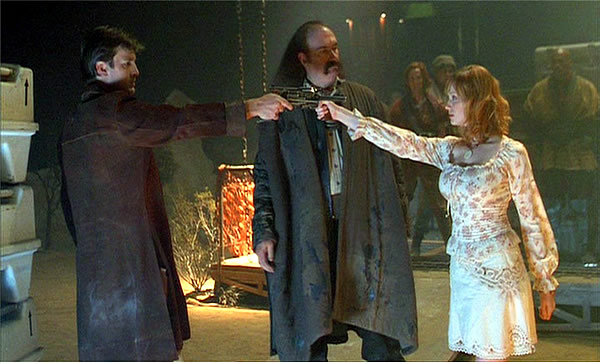 Keul : Je rejoins Mikaua sur son avis général concernant cette série. Il s’agit certainement de l’une des meilleures séries de science-fiction qu’il m’ait été donné de voir ces dernières années. Bien développée, avec un univers reprenant des éléments classiques du genre tout en y apposant sa touche personnelle, Firefly avait tout pour devenir l’une des références du genre. Mais une fois de plus, le Saint Bénéfice ne l’a pas entendu de cette oreille et a mis fin à cette saga prometteuse. On « remerciera » une nouvelle fois la Fox, qui possède cette facilité presque divine à saboter ses meilleurs projets au profit de séries et films insipides et tout justes bons à servir de bruit de fond dans une soirée entre amis. Bien dommage donc, mais le fan pourra néanmoins de consoler avec le film, qui arrive – et ce n’était pas gagné d’avance – à clore la série et répondre à un grand nombre de questions en suspens.