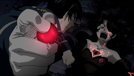Les thèmes traités dans cet anime et dans le manga sont aussi variés qu’ambitieux et maîtrisés par l’auteur avec aisance. Entre les guerres de croyances et de religions, l’application des sept péchés capitaux, la création d’êtres vivants par la science, mais également l’existence de Dieu et la volonté de l’homme de s’élever à son niveau par tous les moyens possibles et imaginables, l’ambiance du manga et de l’anime ne peut être qu’oppressante, et parfois un peu gore, car l’auteur ne fait pas les choses à la légère, préférant souvent montrer la vérité crue plutôt que de biaiser en prenant des chemins détournés. Les parallèles avec le monde réel et notre histoire sont nombreux et certains thèmes abordés peuvent même être pris comme une critique ouverte de certains faits historiques. La guerre d’extermination d’Ishval au moyen une science dévastatrice par une armée placée sous les ordre du Führer n’est d’ailleurs pas sans rappeler la Seconde Guerre Mondiale, et plusieurs autres allusions sur notre histoires se retrouvent également dans l’anime et dans les OAV, comme « Le Conquérant de Shamballa » par exemple.