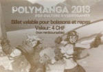 Contrairement aux autres années, Polymanga a abandonné le système de vente directe pour installer un système de bons. Un bon valait 4 CHF (ou francs suisses, pour ceux qui n’aiment pas les abréviations). En théorie, ça peut paraître intéressant, en pratique c’était une réelle catastrophe !