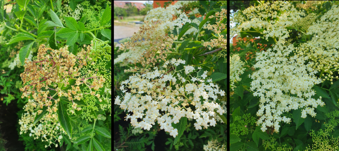 Conseils de Kit : Contrairement au sirop de fruit, le sirop de sureau ne peut pas être fait avec n’importe quelle fleur de sureau. Il est important de bien sélectionner celles-ci pour que les ombrelles soient uniquement composées de fleurs fraîches (non fanées). Les photos qui suivent vous montrent différentes ombrelles et lesquelles choisir de préférence.
